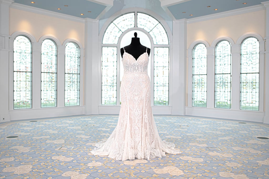 Grab your tiara and prepare for some magic, because Disney is releasing a brand-new wedding-dress collection inspired by its beloved animated princesses. The second installment of the company’s ongoing partnership with Allure Bridals boasts a handful of enchanting gowns designed to pay tribute to Belle, Jasmine, Ariel, Tiana, Pocahontas, Snow White, Cinderella, Aurora, and Rapunzel, and features plenty of fluffy tulle, intricate lace, and glitzy beading. In fact, there are three dresses entirely dedicated to Belle this time around as a nod to Beauty and the Beast‘s 30th anniversary this year.