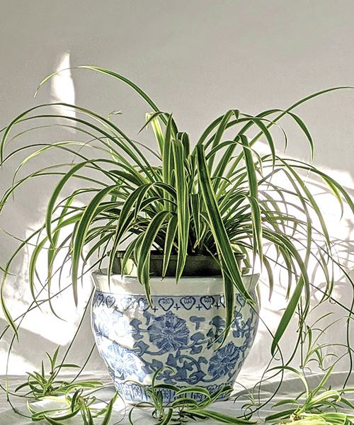 SPIDER PLANT This popular air purifying plant can absorb carbon monoxide, formaldehyde and xylene in the air. It is particularly effective in spaces where air quality is compromised by appliances such as gas stoves or heating systems. The plant’s long arching leaves and small offshoots make it a visually appealing addition to any space. It can thrive in bright indirect light, is easy to care for and presents a great option for beginners.
