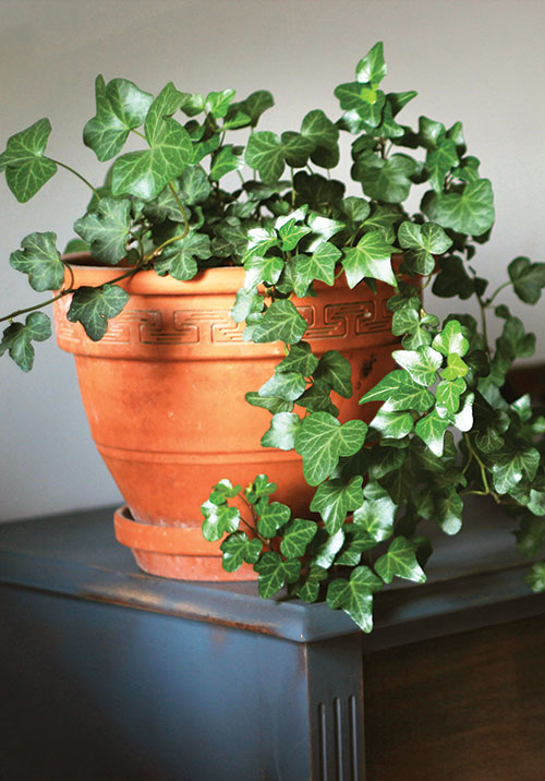 ENGLISH IVY This is a versatile fast-growing plant known for its ability to filter formaldehyde, benzene and xylene from the air. It’s ideal for reducing airborne pollutants in small spaces such as bedrooms and bathrooms. English ivy is easy to maintain, and thrives in both sunlight and shade. This beautiful creeper can be placed in hanging baskets or allowed to trail down from shelves.