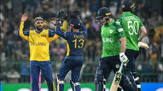 Mumbai: In a game dominated by spinners from both sides, Sri Lanka’s Wanindu Hasaranga and Maheesh Theekshana, claimed three wickets each to save co-hosts Sri Lanka the blushes against Ireland with a 20-run win in their opening Group B match of the ICC Men’s T20 World Cup played at the R Premadasa Stadium, Colombo, on Sunday evening.