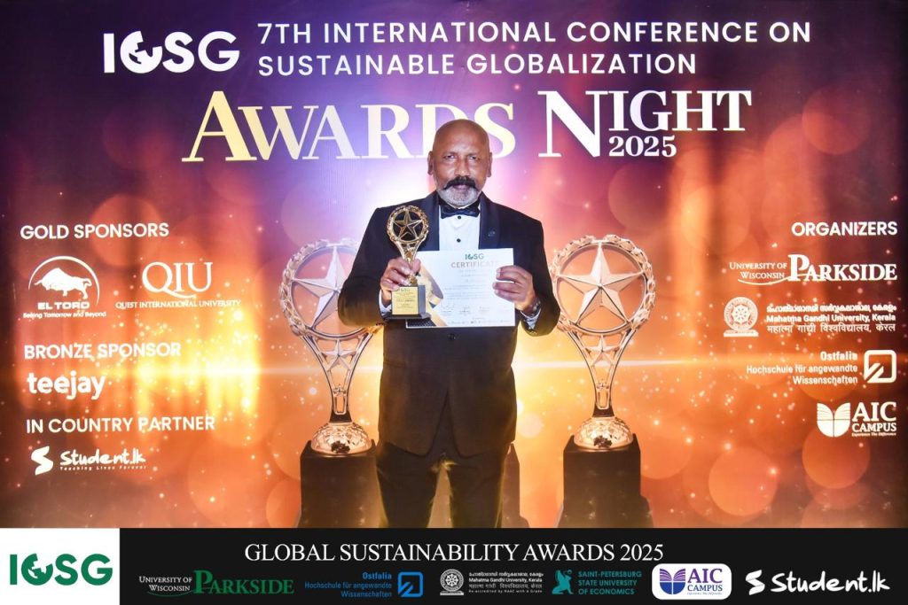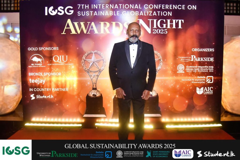 M. Mohanraj has been awarded the prestigious Gold for Sustainable Hotel and Restaurant Concept at the 7th International Conference on Sustainable Globalization (ICSG) awards night 2025. Recognized for significant contributions to sustainability in alignment with the UN Sustainable Development Goals (SDGs), Mohanraj’s innovative approach has set a benchmark for eco-conscious hospitality.