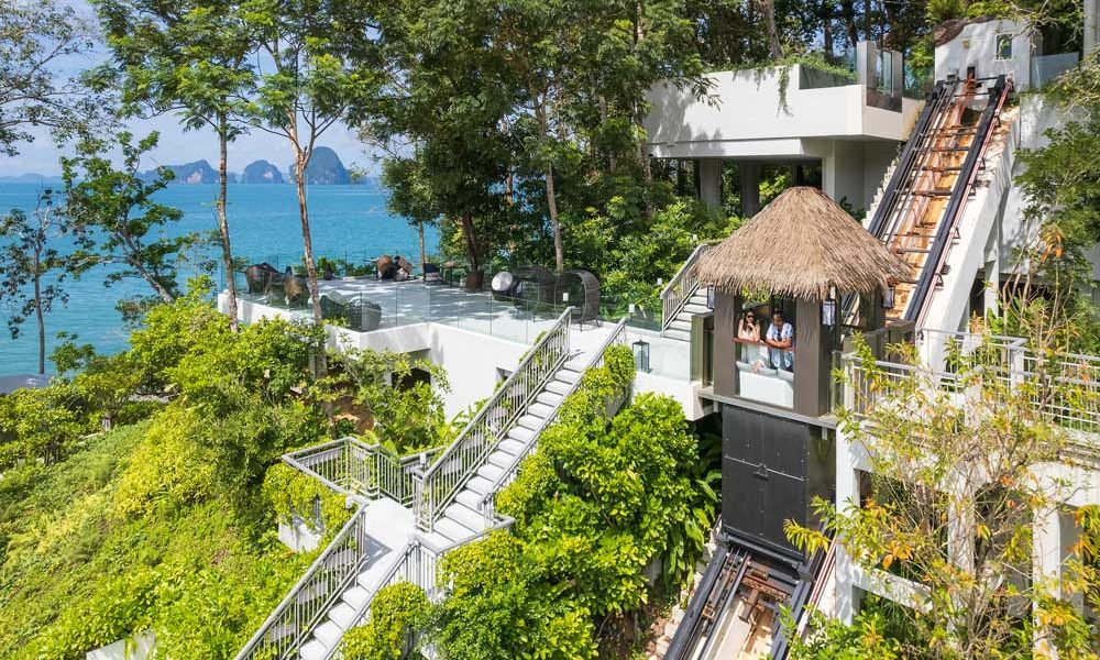 Attached by a short walkway to Banyan Tree Krabi’s signature Thai restaurant, Saffron, which is in turn accessible from the resort by a 60-second ride in an electric funicular, the panoramic trio of Bird’s Eye tables are quite possibly one of the most outstanding features that prompted guests to vote Banyan Tree Krabi as No 4 Resort in Thailand at this year’s Conde Nast Traveler Readers Choice Awards.