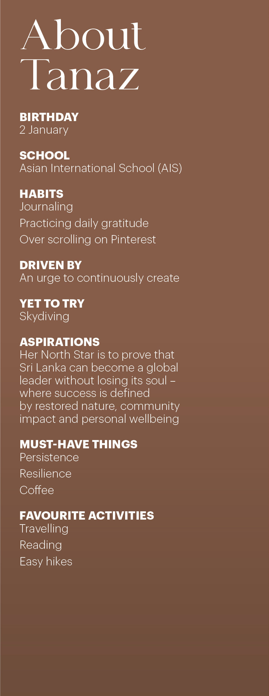 Tanaz Pestonjee has a clear outlook for Sri Lanka – not merely as a market but a destination with untapped lifestyle potential. As Director of Business Development of Abans, she plays a crucial role in shaping how global brands are introduced to and experienced by local consumers.